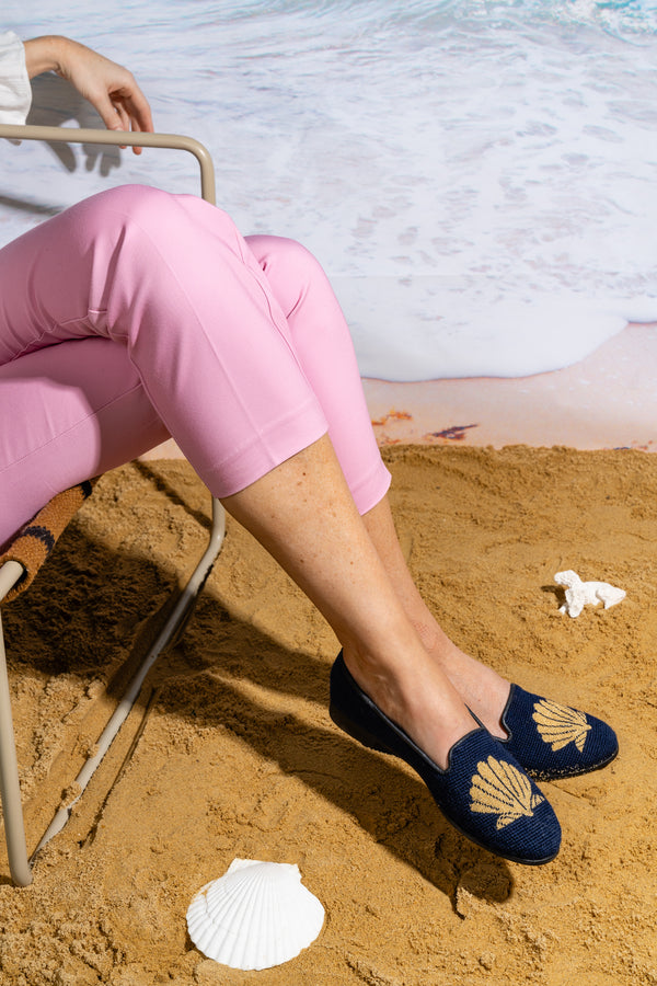 By Paige Women’s Needlepoint Loafer in Gold Scallop/Navy